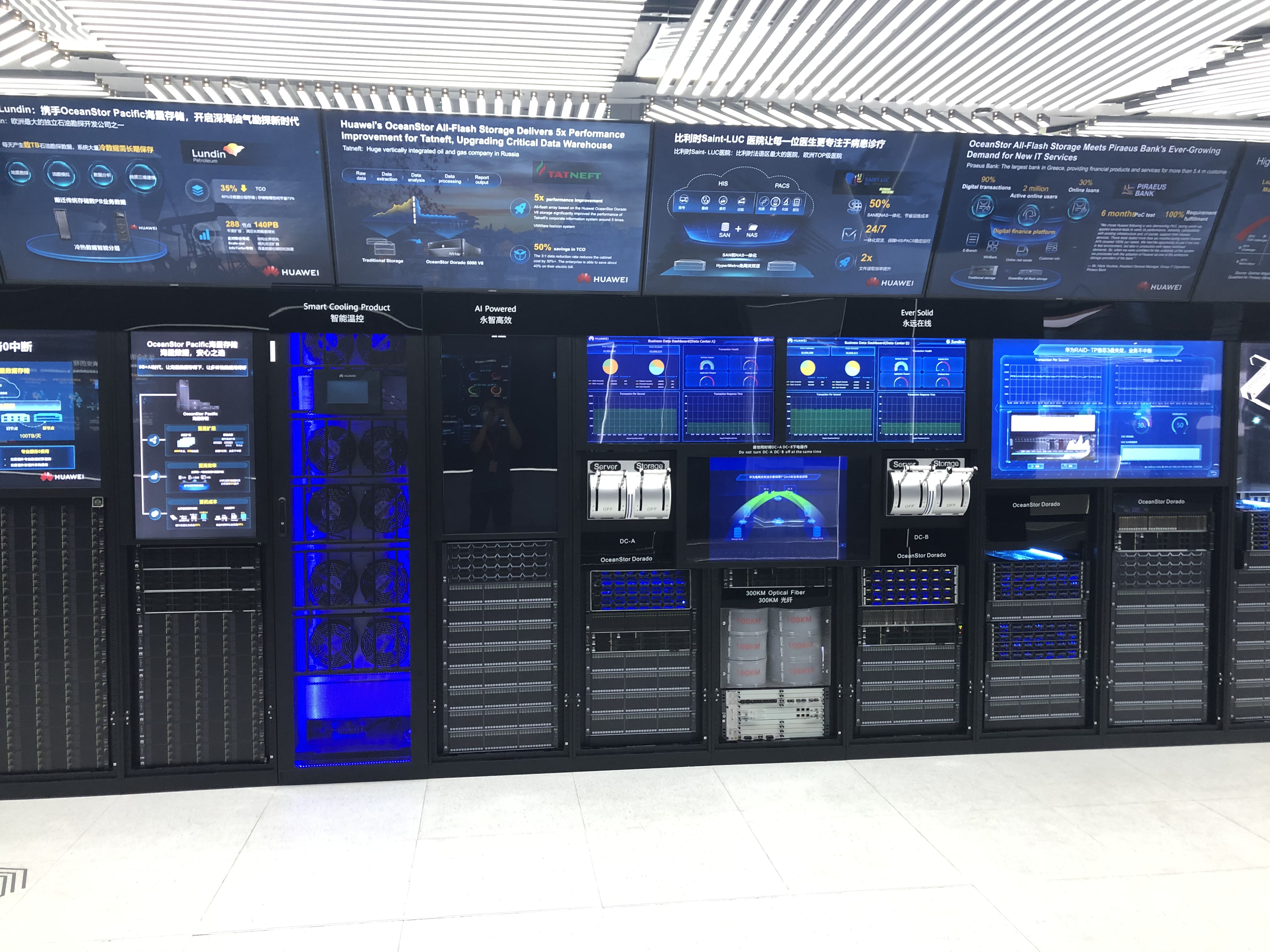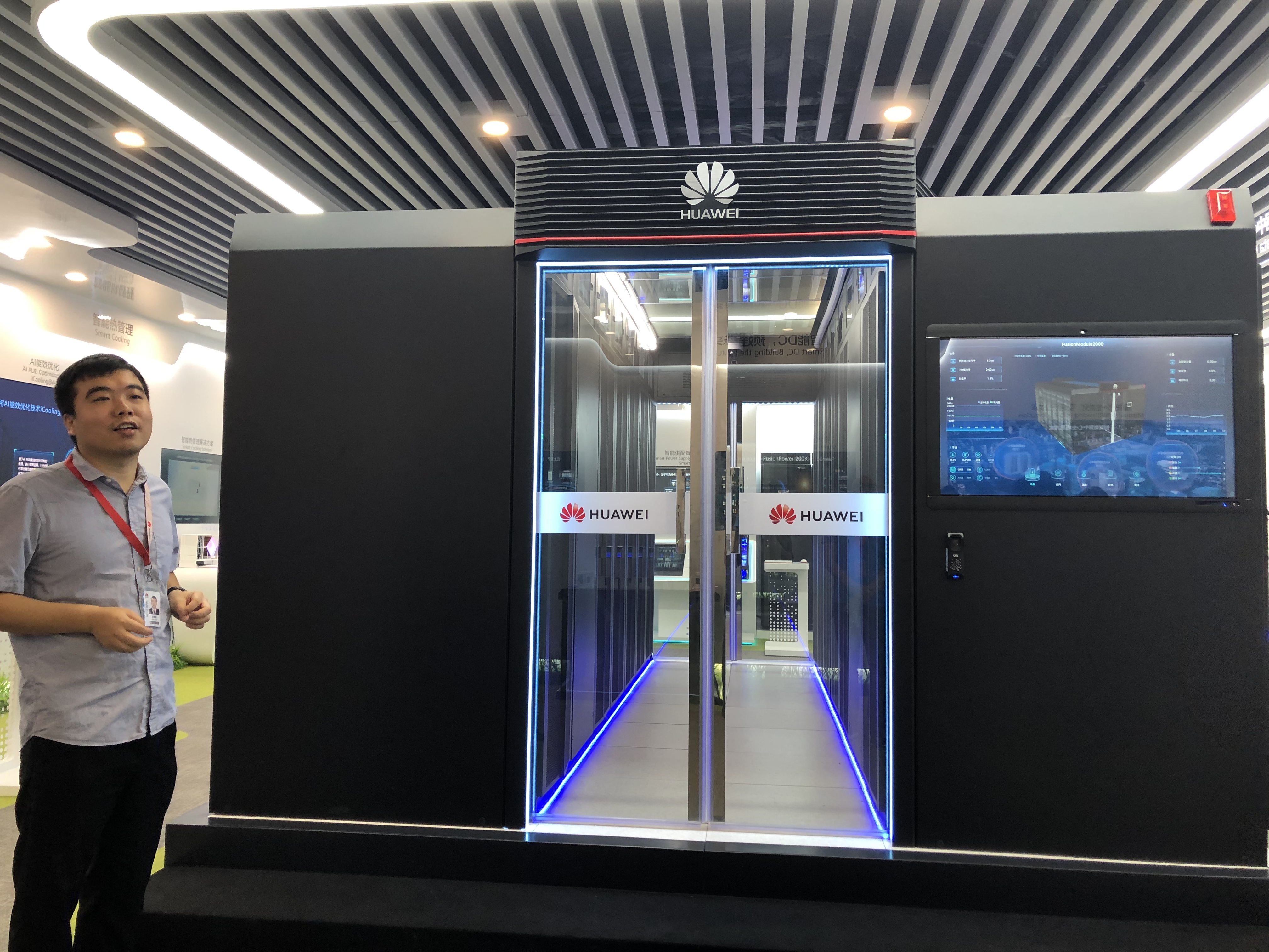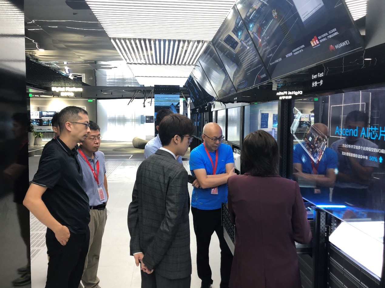 15日上午,考察人員參觀了華為公司的產品展示大廳,聽取了講解員對華為的各種產品、方案的介紹,詳細了解了華為的數據中心、智慧園區、華為云、WIFI6、5G、AI、芯片等產品及技術方案,并同相關人員進行了溝通交流。隨后,專門到華為的能源產品展示中心,了解華為的模塊化數據中心產品及方案。