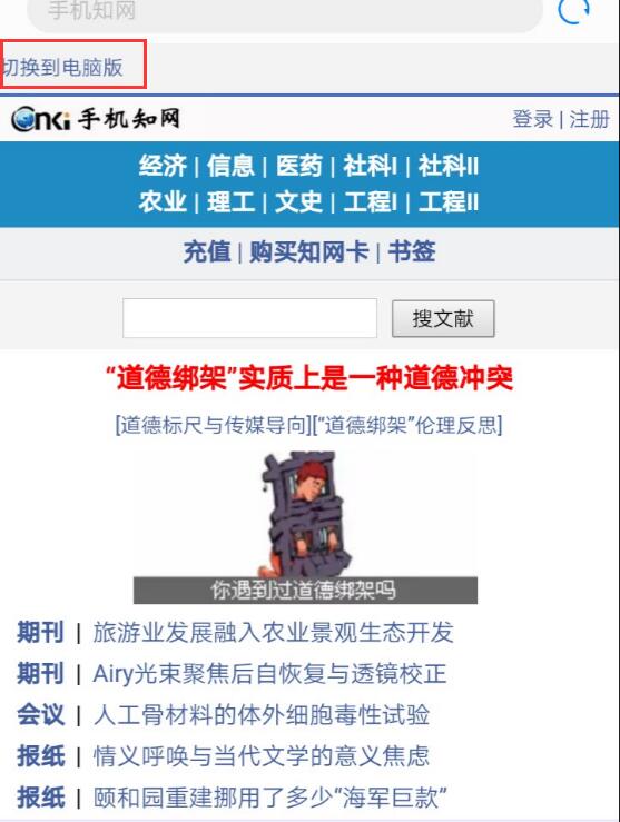 3、手機端不能下載知網資源。手機端訪問圖書資源,尤其是知網資源時,必須要“切換到電腦版”。